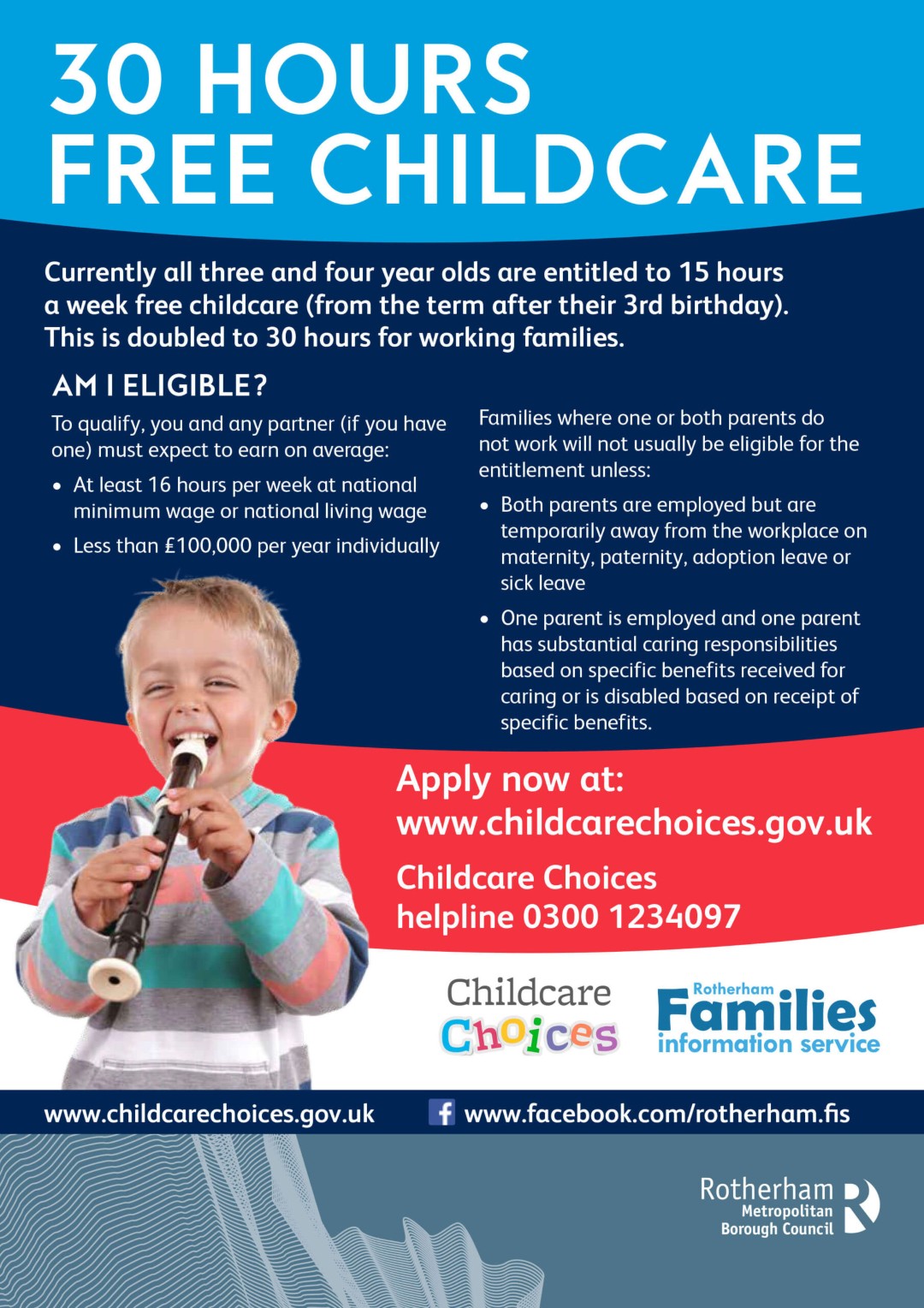 All 3 to 4-year-olds in England are entitled to 570 free hours of childcare per year. At Rawmarsh Sandhill, this equates to 15 hours a week for 38 weeks of the year. Your child will stay for either a daily morning session or a daily afternoon session.
